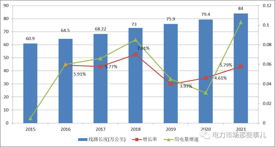 電力行業(yè)報(bào)告中,電源裝機(jī)及其增長(zhǎng)率比較吸人眼球,分品種、分地區(qū)的數(shù)據(jù)都能容易搜索到,可以細(xì)化到煤電前十大省、光伏前十大省等等。相對(duì)而言,電網(wǎng)的變電容量、線路長(zhǎng)度的關(guān)注要低不少。本文就把電改之后,中國電網(wǎng)這兩大指標(biāo)進(jìn)行梳理,并與電網(wǎng)投資情況進(jìn)行對(duì)比[1]。