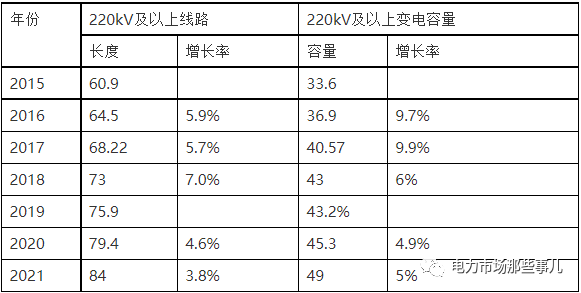 2015年以來中國電網(wǎng)變電容量等增長(zhǎng)數(shù)據(jù)