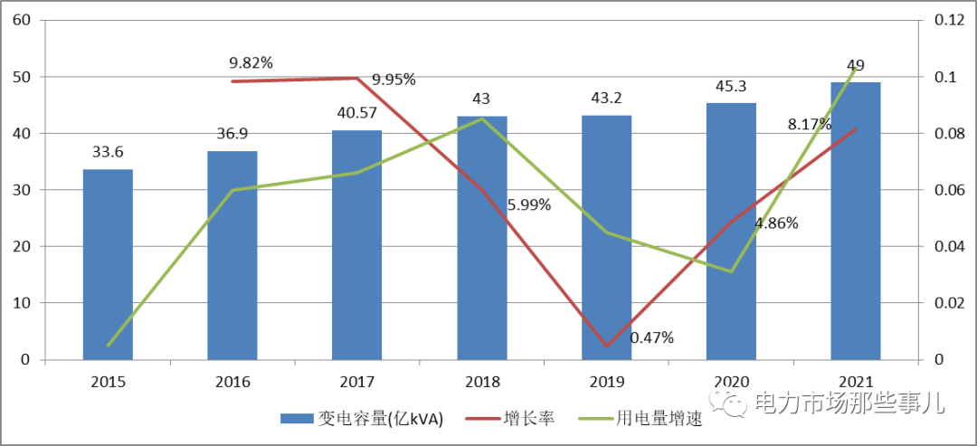 2015年以來中國(guó)電網(wǎng)變電容量等增長(zhǎng)情況