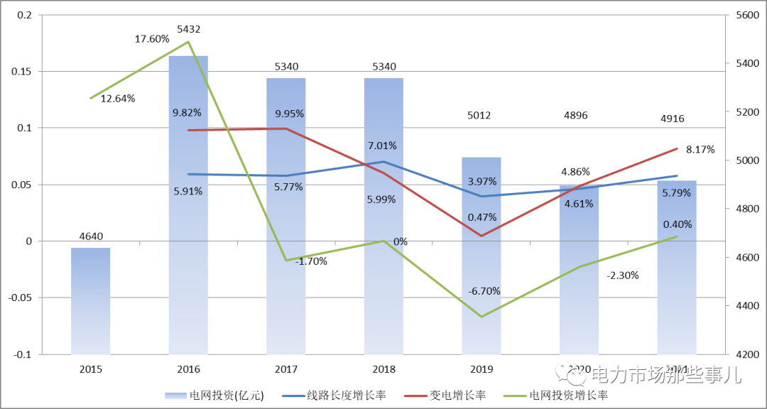 電力行業(yè)報(bào)告中,電源裝機(jī)及其增長(zhǎng)率比較吸人眼球,分品種、分地區(qū)的數(shù)據(jù)都能容易搜索到,可以細(xì)化到煤電前十大省、光伏前十大省等等。相對(duì)而言,電網(wǎng)的變電容量、線路長(zhǎng)度的關(guān)注要低不少。本文就把電改之后,中國(guó)電網(wǎng)這兩大指標(biāo)進(jìn)行梳理,并與電網(wǎng)投資情況進(jìn)行對(duì)比[1]。