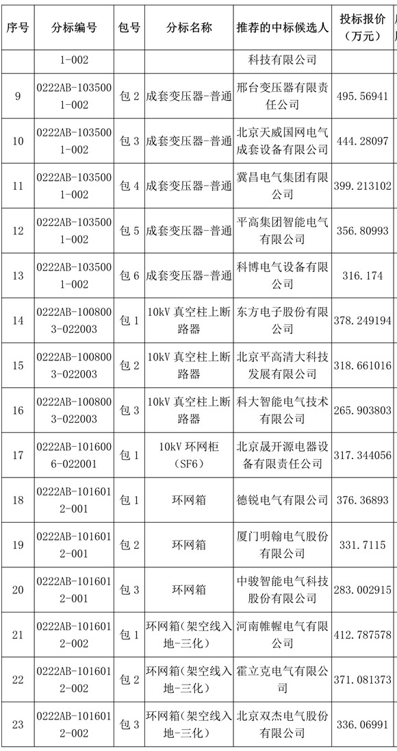 國網(wǎng)北京電力2022年第二次配網(wǎng)物資協(xié)議庫存公開招標(biāo)中標(biāo)候選人