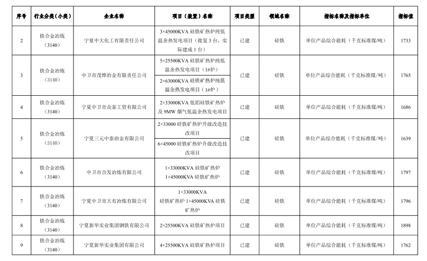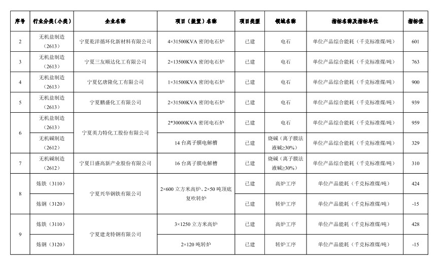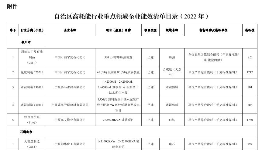 2022年|寧夏公布自治區(qū)重點領域企業(yè)能效清單目錄(2022年)