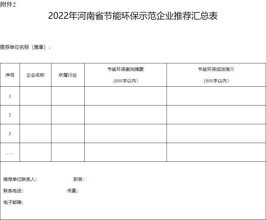 2.2022年河南省節(jié)能環(huán)保示范企業(yè)推薦匯總表