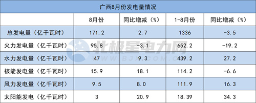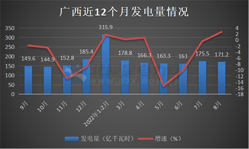 1-8月,總發(fā)電量3956.5億千瓦時(shí),同比減少3.9%;其中,火電發(fā)電量2899.5億千瓦時(shí),同比減少7.2%;水力發(fā)電量125.1億千瓦時(shí),同比增長(zhǎng)48.1%;風(fēng)力發(fā)電量149.7億千瓦時(shí),同比增長(zhǎng)104.8%;太陽(yáng)能發(fā)電量37.52億千瓦時(shí),同比增長(zhǎng)7.8%;核電發(fā)電量92.2億千瓦時(shí),同比減少13.3%。華南4省市2022年8月發(fā)電量情況:火、水、風(fēng)、光增減多少?(廣東、廣西、海南、福建)