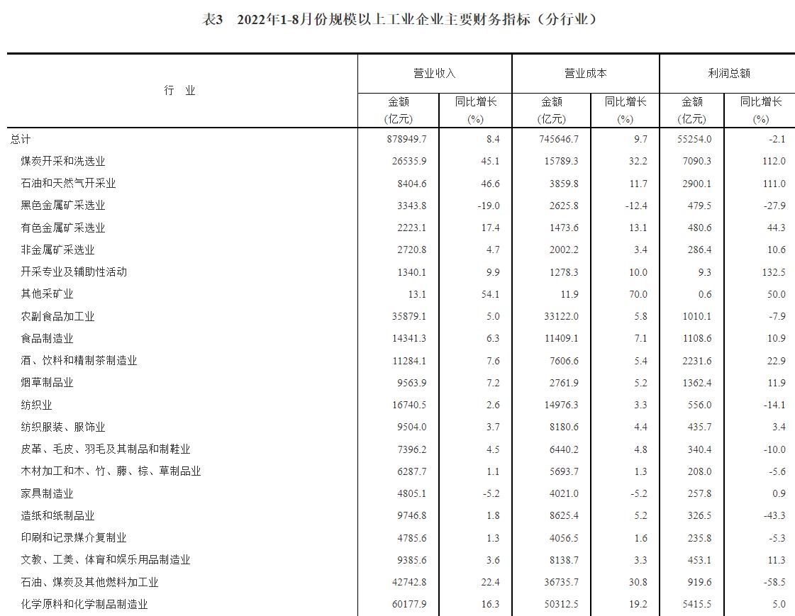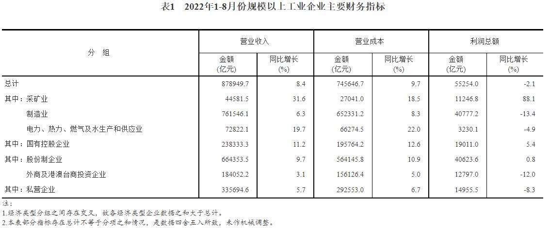 2022年|國(guó)家統(tǒng)計(jì)局:1—8月份全國(guó)規(guī)模以上工業(yè)企業(yè)利潤(rùn)下降2.1%