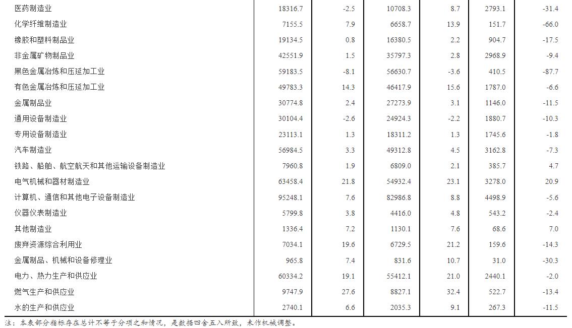 二、規(guī)模以上工業(yè)企業(yè)利潤(rùn)總額、營(yíng)業(yè)收入等指標(biāo)的增速均按可比口徑計(jì)算。報(bào)告期數(shù)據(jù)與上年所公布的同指標(biāo)數(shù)據(jù)之間有不可比因素,不能直接相比計(jì)算增速。其主要原因是:(一)根據(jù)統(tǒng)計(jì)制度,每年定期對(duì)規(guī)模以上工業(yè)企業(yè)調(diào)查范圍進(jìn)行調(diào)整。每年有部分企業(yè)達(dá)到規(guī)模標(biāo)準(zhǔn)納入調(diào)查范圍,也有部分企業(yè)因規(guī)模變小而退出調(diào)查范圍,還有新建投產(chǎn)企業(yè)、破產(chǎn)、注(吊)銷企業(yè)等變化。(二)加強(qiáng)統(tǒng)計(jì)執(zhí)法,對(duì)統(tǒng)計(jì)執(zhí)法檢查中發(fā)現(xiàn)的不符合規(guī)模以上工業(yè)統(tǒng)計(jì)要求的企業(yè)進(jìn)行了清理,對(duì)相關(guān)基數(shù)依規(guī)進(jìn)行了修正。(三)加強(qiáng)數(shù)據(jù)質(zhì)量管理,剔除跨地區(qū)、跨行業(yè)重復(fù)統(tǒng)計(jì)數(shù)據(jù)。