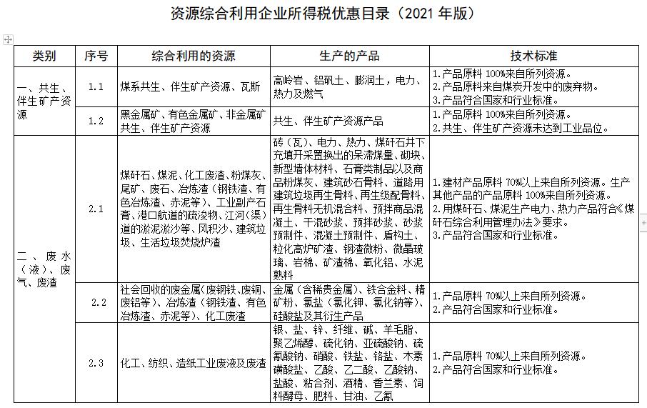《資源綜合利用企業(yè)所得稅優(yōu)惠目錄(2021年版)》的公告
