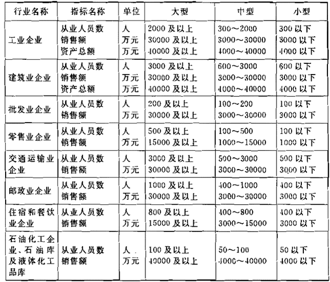 2工業(yè)企業(yè)的銷售額已先行統(tǒng)計制度中的年產(chǎn)品銷售收入代替;建筑業(yè)企業(yè)的銷售額以現(xiàn)行統(tǒng)計制度中的年工程結算收入代替;批發(fā)和零售業(yè)的銷售額以現(xiàn)行報表制度中的年銷售額代替;交通運輸和郵政業(yè)、住宿和餐飲業(yè)企業(yè)的銷售額已先行統(tǒng)計制度中的年營業(yè)收入代替;資產(chǎn)總額以現(xiàn)行統(tǒng)計制度中的資產(chǎn)合計代替。