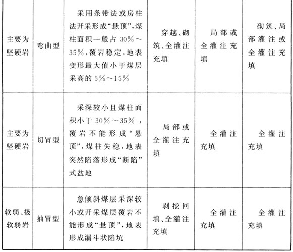 2 依據(jù)覆巖及其垮落類型選擇地基處理方法,可按表3.0.7-1的規(guī)定確定: