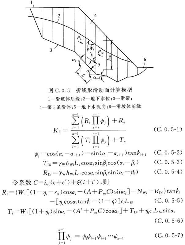 C.0.5 采動邊坡折線形滑移穩(wěn)定性系數(shù)Kf可按下列公式計算(圖C.0.5):