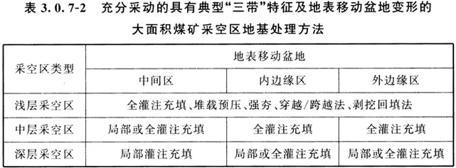 3 對充分采動的具有典型“三帶”特征及地表移動盆地變形的大面積煤礦采空區(qū),可按表3.0.7-2確定。