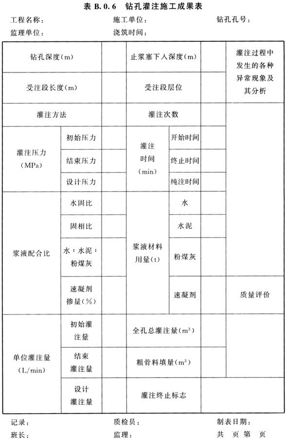 B.0.5 灌注漿液配制記錄表應(yīng)符合表B.0.5的規(guī)定。
