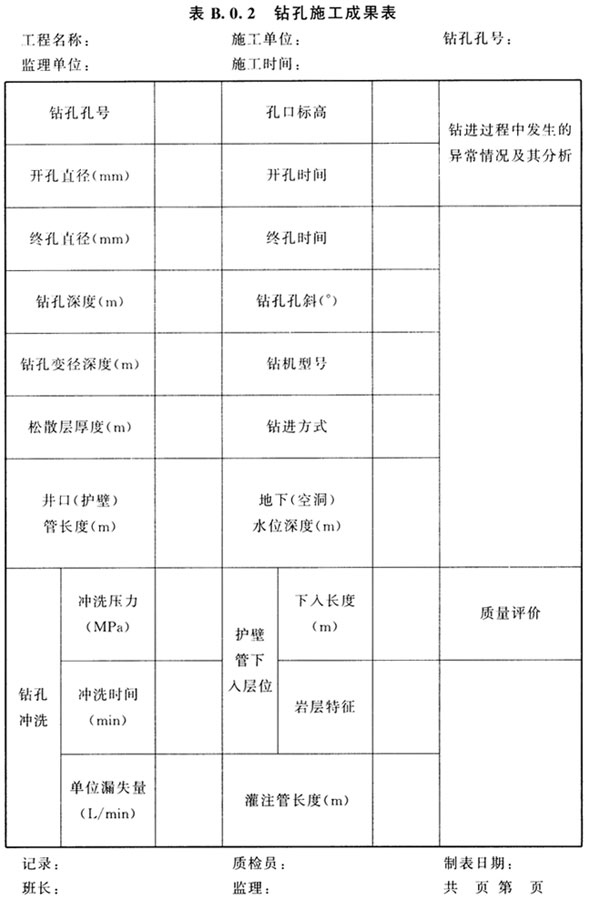 B.0.2 鉆孔施工成果表應(yīng)符合表B.0.2的規(guī)定。
