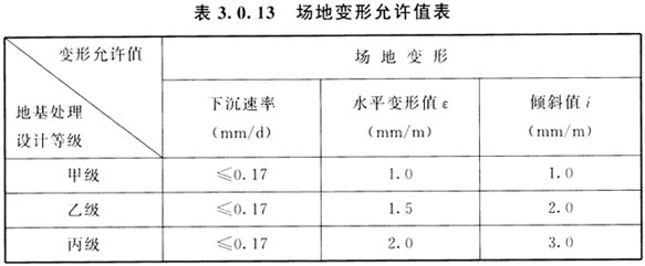 3.0.13 處理后的采空區(qū)場地變形允許值應(yīng)按表3.0.13確定。
