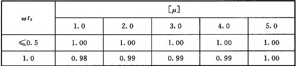2 當(dāng)爆炸動(dòng)荷載的波形簡化為有升壓時(shí)間的三角形時(shí),可根據(jù)結(jié)構(gòu)構(gòu)件自振圓頻率w、動(dòng)荷載升壓時(shí)間tr、動(dòng)荷載等效作用時(shí)間td及允許延性比[μ]按下式計(jì)算: