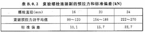 復驗螺栓連接副的預拉力平均值和標準偏差應(yīng)符合表B.0.2的規(guī)定。