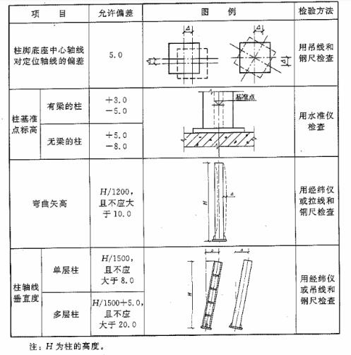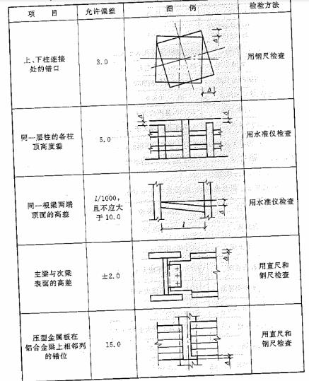 表E.0.1 單層鋁合金結(jié)構(gòu)中柱子安裝的允許偏差(mm)