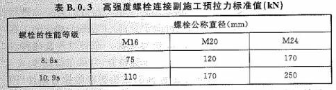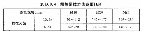 進行連接副扭矩系數(shù)試驗時,螺栓預拉力值應(yīng)符合表B.0.4的規(guī)定。