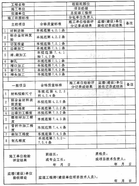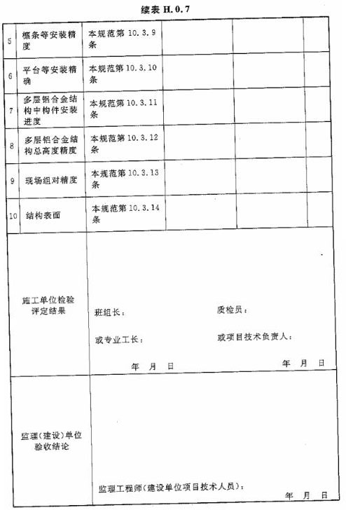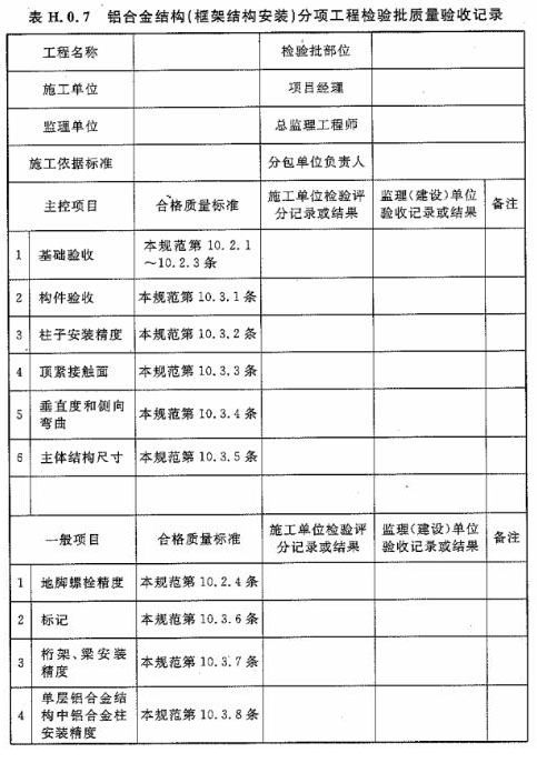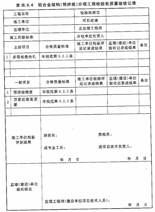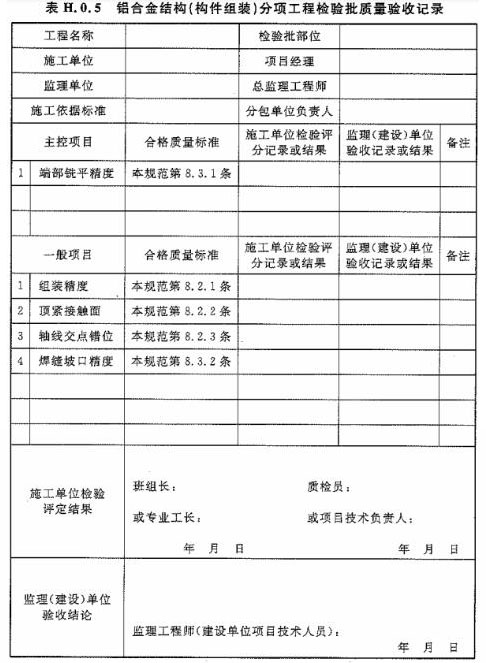 附錄H 鋁合金結(jié)構(gòu)分項工程檢驗批質(zhì)量驗收記錄表