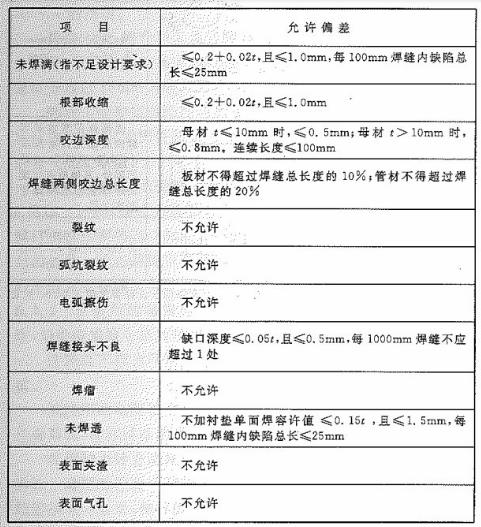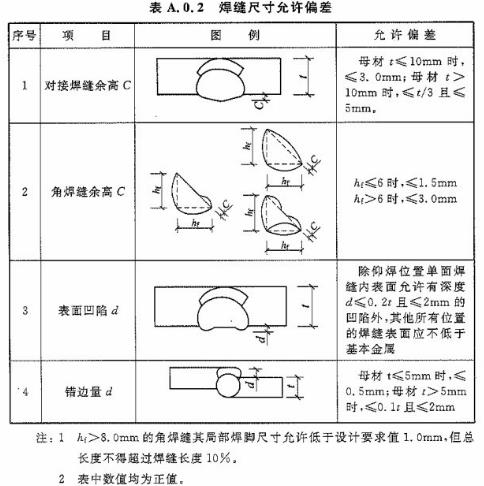 表A.0.1 焊縫外觀質(zhì)量標準