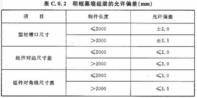 C.0.1 鋁合金構(gòu)件組裝的允許偏差應(yīng)符合表C.0.1~表C.0.3的規(guī)定。