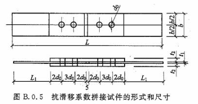 抗滑移系數(shù)檢驗應(yīng)采用雙摩擦面的二栓拼接的拉力試件(圖B.0.5)。