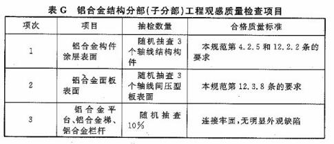 15.0.3 鋁合金結(jié)構(gòu)分部(子分部)工程有關(guān)觀感質(zhì)量檢驗應(yīng)按本規(guī)范附錄G執(zhí)行。
