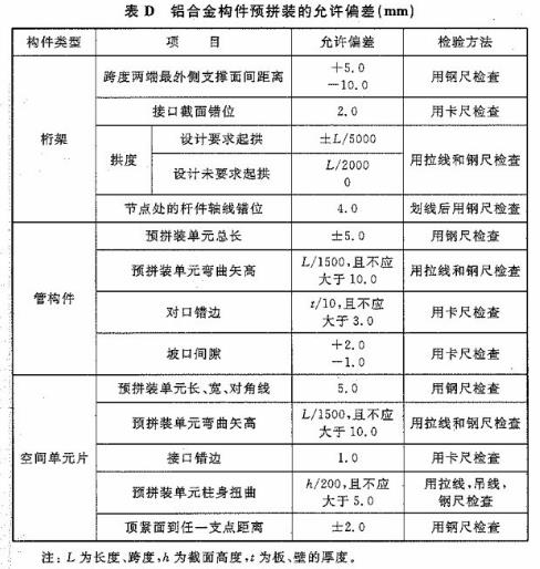 附錄D 鋁合金構(gòu)件預拼裝的允許偏差