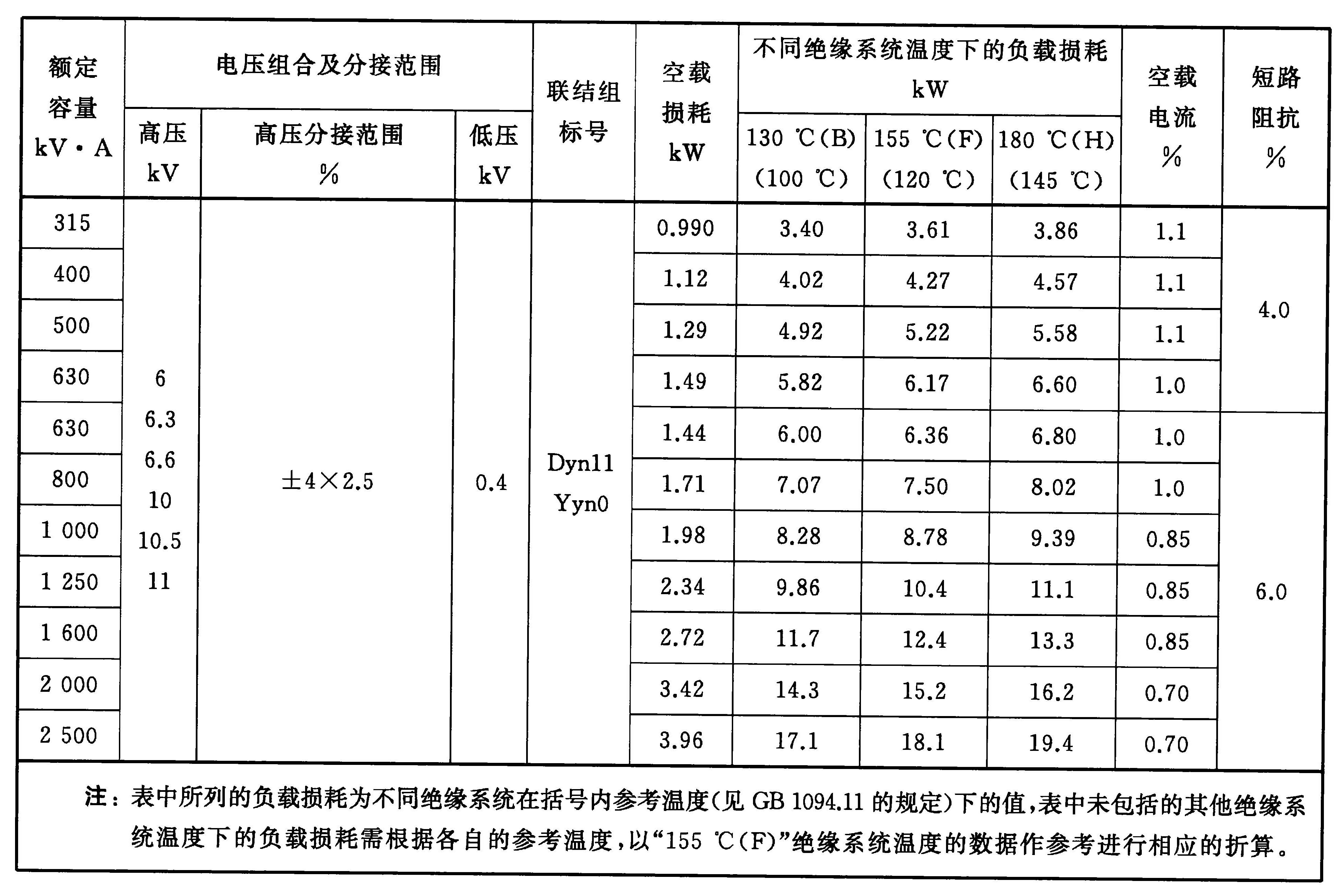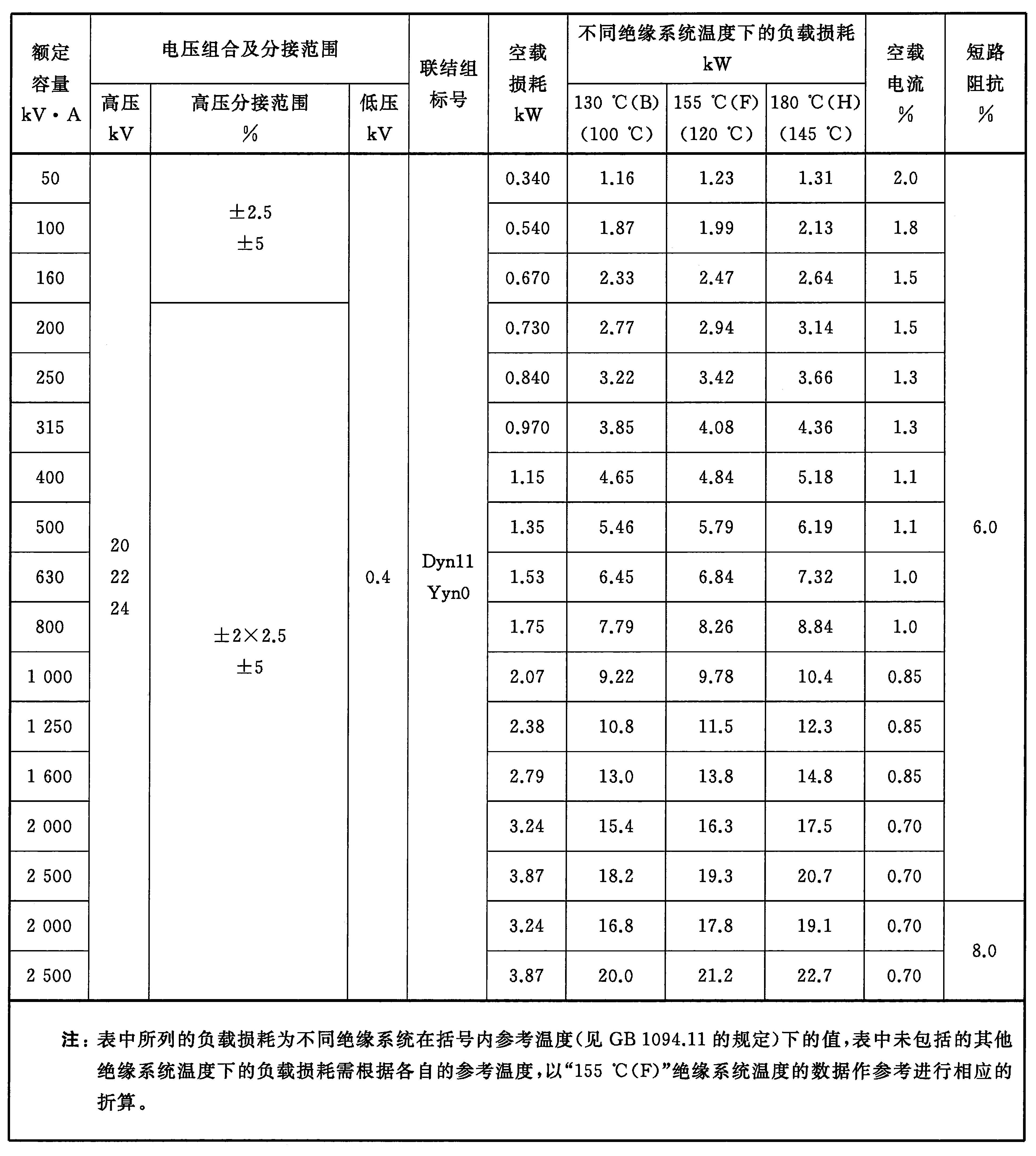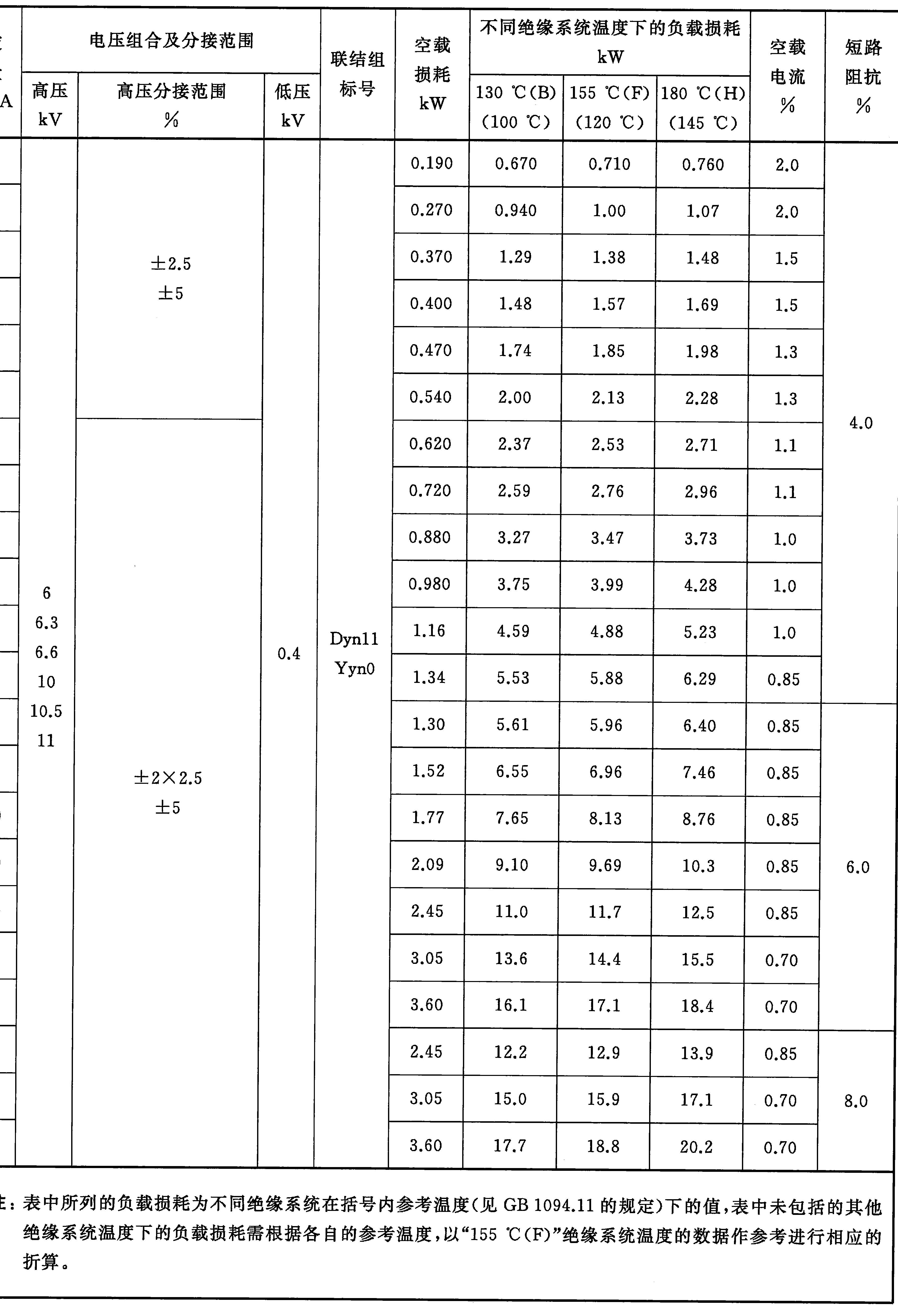 4.2 20 kV級自冷變壓器的額定容量、電壓組合、聯(lián)結(jié)組標(biāo)號、空載損耗、負(fù)載損耗、空載電流及短路阻抗應(yīng)符合表4的規(guī)定。GB/T 10228-2015 干式電力變壓器技術(shù)參數(shù)和要求 (免費(fèi)下載)