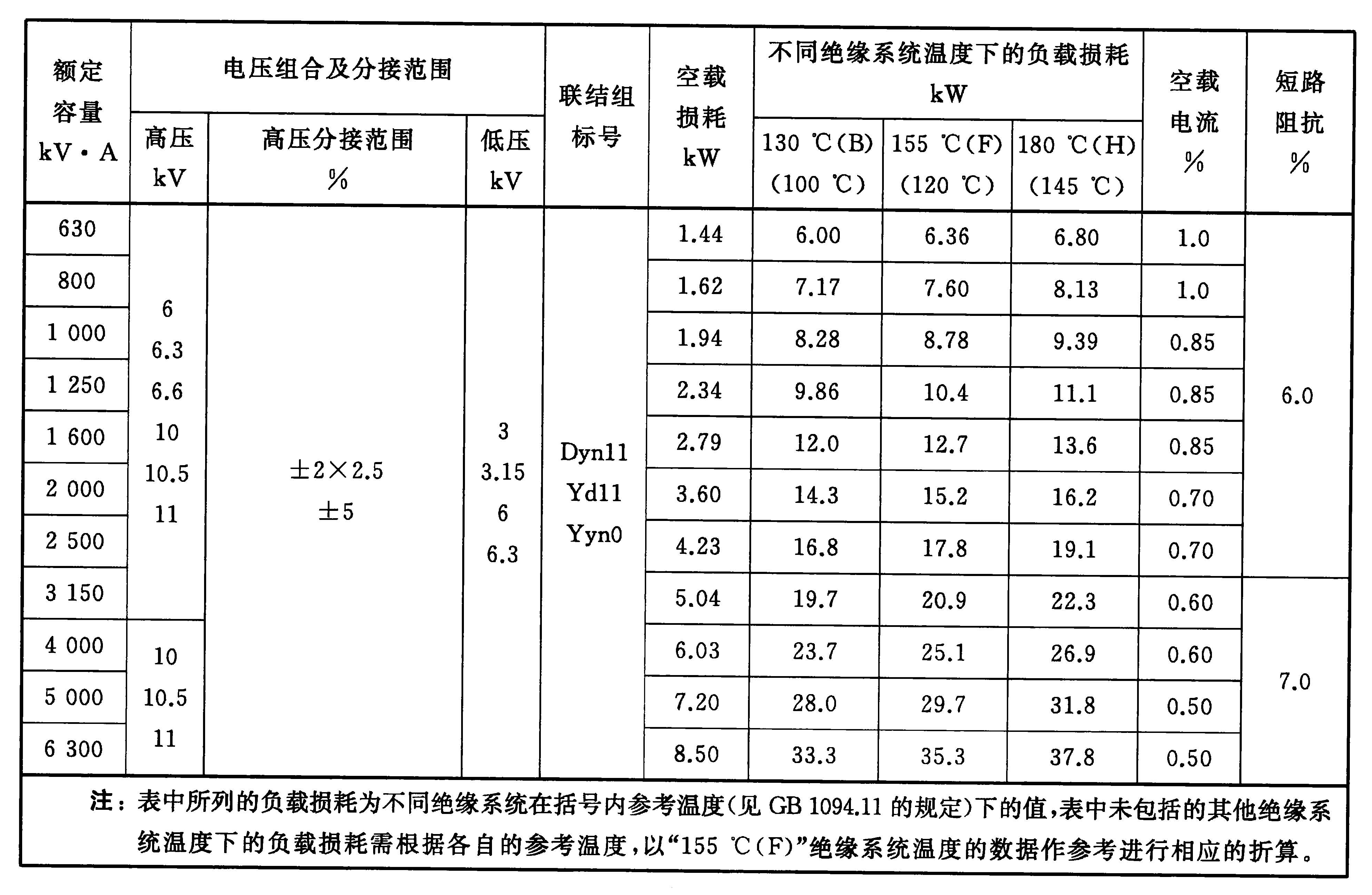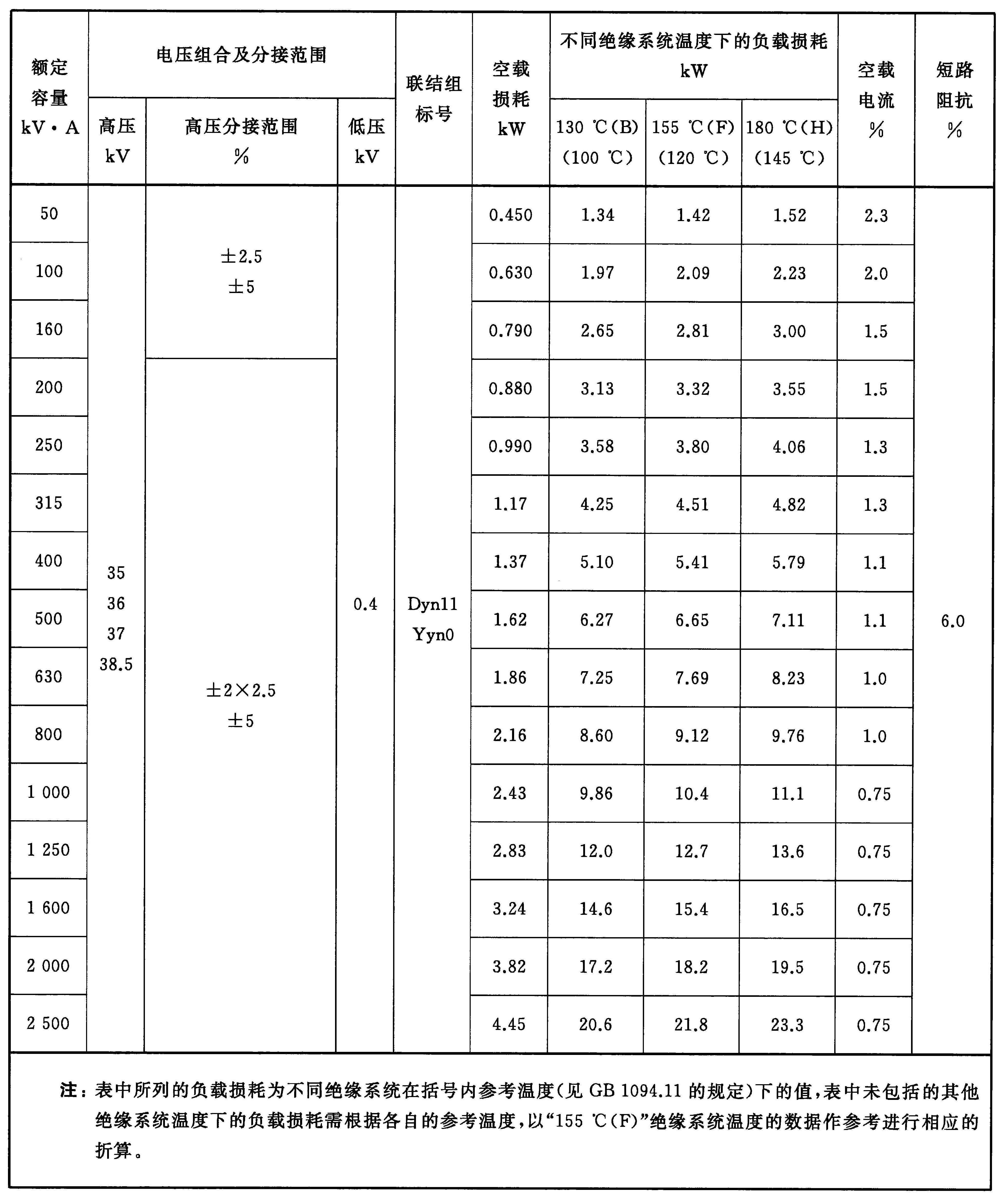 4.1 6 kV、10 kV級自冷變壓器的額定容量、電壓組合、聯(lián)結(jié)組標(biāo)號、空載損耗、負(fù)載損耗、空載電流及短路阻抗應(yīng)符合表1~表3的規(guī)定。GB/T 10228-2015 干式電力變壓器技術(shù)參數(shù)和要求 (免費(fèi)下載)