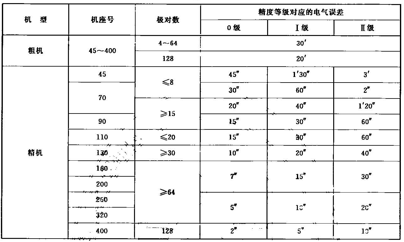 對XFS型和XBS型電機,當極對數p≤8時,粗、精機零位偏差應在±60′(機械角,下同)范圍內;當極對數8<p≤64時,粗、精機零位偏差應在士30′(機械角,下同)范圍內;當p≥64時,粗、精機零位偏差應在±20′范圍內。免費下載_報告模板_文庫