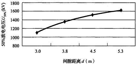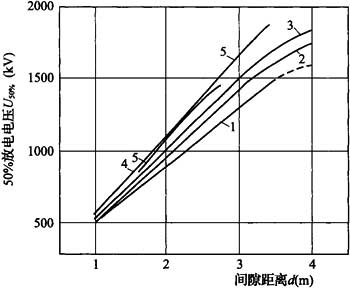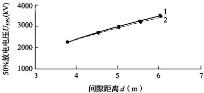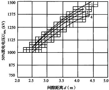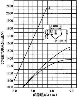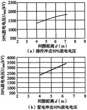4 500kV變電站仿真型構(gòu)架或設(shè)備在操作沖擊電壓下空氣間隙的放電電壓: