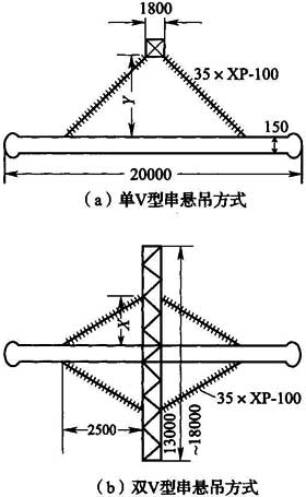 2 懸吊式硬導(dǎo)線為外φ150mm、內(nèi)φ136mm鋁管,變電站構(gòu)架為由φ426mm半圓柱兩根組成的人字柱,橫梁對地高20m。