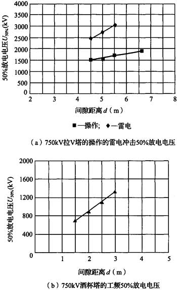 圖F.0.4-6 750kV同雙回線路空氣間隙的雷電沖擊50%放電電壓