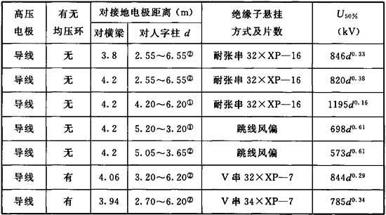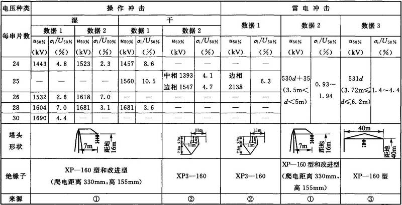 注:①保定變壓器廠、清華大學(xué)高壓教研組、北京電力設(shè)計院、北京電力試驗研究所,500kV晉京線輸電桿塔絕緣電氣特性試驗報告,《北京電力技術(shù)》,1979.1;