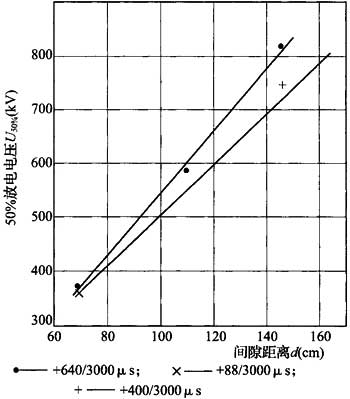 圖F.0.3-1 空氣間隙的工頻50%放電電壓
