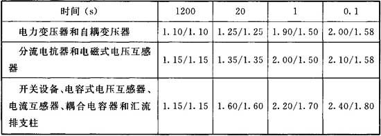 表E.0.1-2 500kV變壓器、電容式電壓互感器及耦合電容器承受暫時過電壓的要求(p.u.)