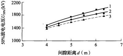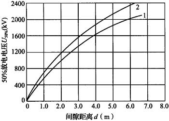 2 330kV線路和變電站空氣間隙的操作沖擊50%放電電壓可按圖F.0.2-2確定。