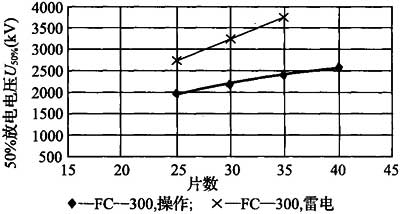 圖F.0.4-1 750kV線路FC-300 Ⅰ型絕緣子串帶6分裂導(dǎo)線的沖擊50%放電電壓
