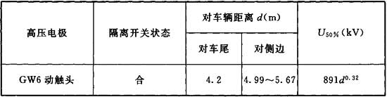表F.0.3-5 隔離開關(guān)對車輛空氣間隙的操作沖擊50%放電電壓