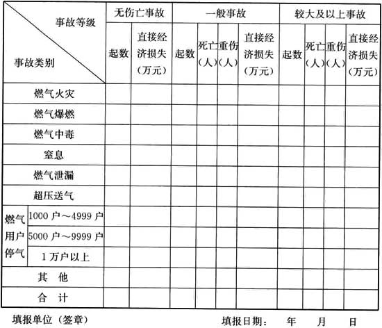 附錄A 城鎮(zhèn)燃氣安全事故報告表