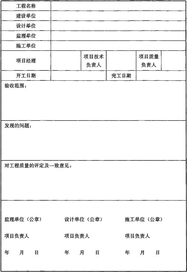 附錄A 施工質(zhì)量驗收記錄表