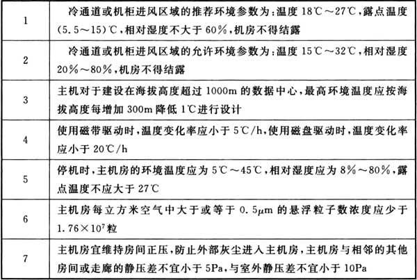 表4.0.1 主機(jī)房電子信息設(shè)備環(huán)境要求
