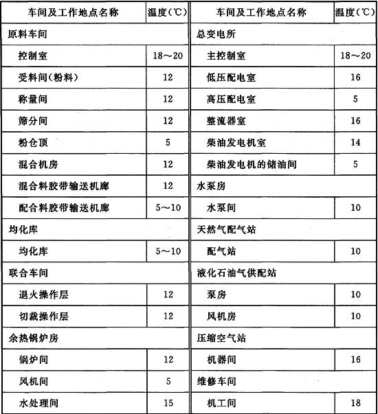 附錄G 光伏壓延玻璃工廠采暖計(jì)算溫度