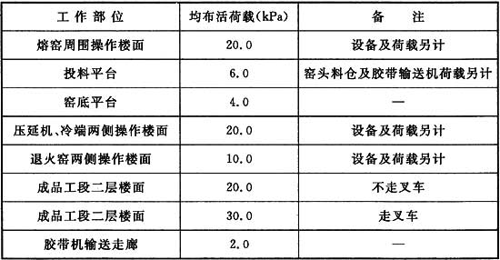 1 車(chē)間內(nèi)無(wú)特殊堆料地面時(shí)應(yīng)按10.0kPa計(jì);車(chē)間有堆料地面時(shí)應(yīng)按堆料重量計(jì)且不應(yīng)小于10.0kPa;