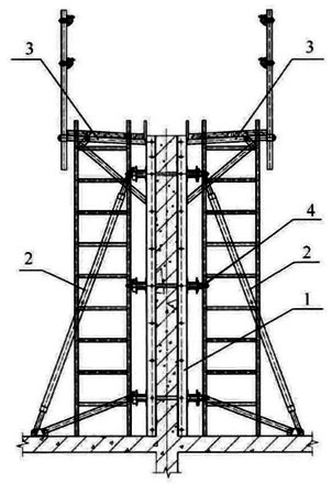 1-面板系統(tǒng);2-支撐系統(tǒng);3-操作平臺系統(tǒng);4-對拉螺栓