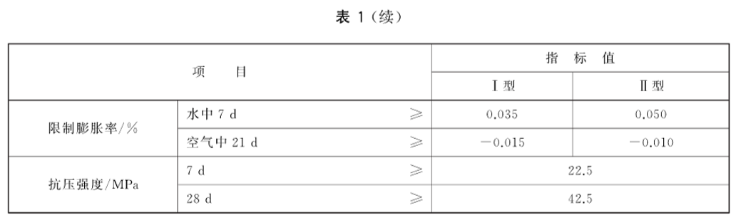 混凝土膨脹劑的物理性能指標(biāo)應(yīng)符合表1規(guī)定。