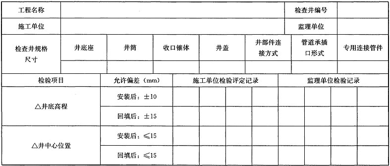 表A 塑料檢查井安裝施工檢驗(yàn)、交接檢驗(yàn)記錄
