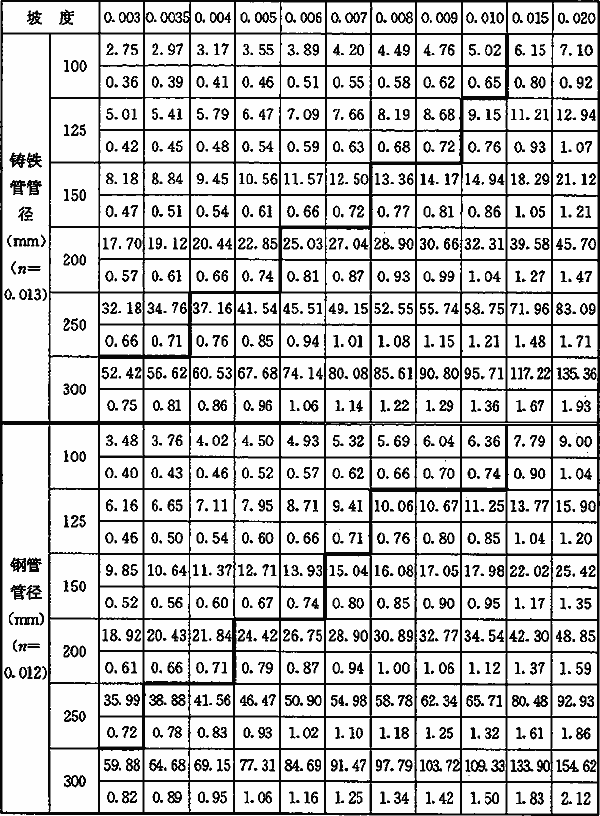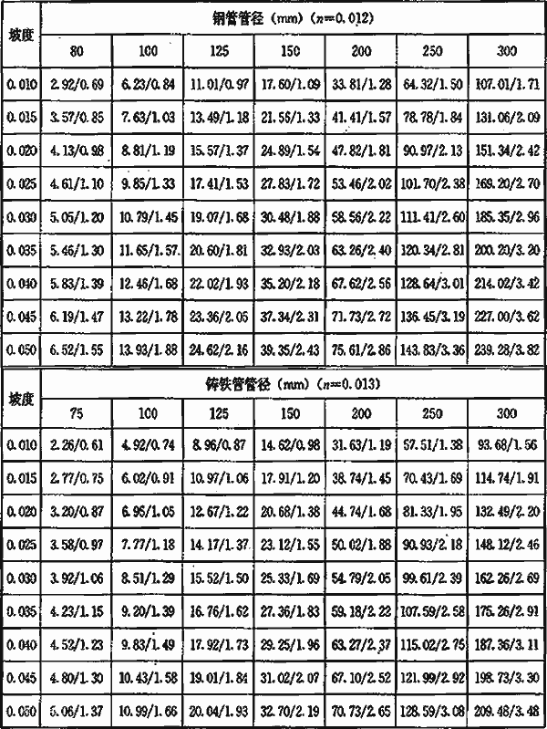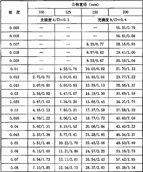 表A.0.1 建筑物內(nèi)重力流生活排水鑄鐵橫管的排水能力qp(L/s)/對應流速v(m/s)