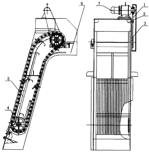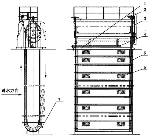 圖A.3 回轉(zhuǎn)式齒耙鏈條格柵除污機結(jié)構(gòu)示意圖